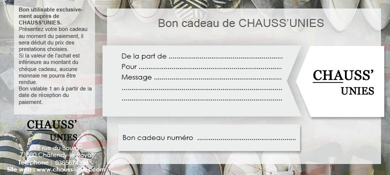 Chèques Cadeaux Chauss’Unies, magasin de chaussures près de Chalon-sur-Saône